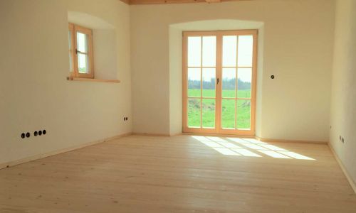 Zum Konzept des Hauses gehören Massivholzdielen in Weisstanne. Schon vor hunderten von Jahren war dies bei Häusern dieser Art so üblich.