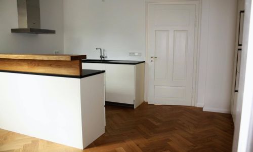 Wer den Charme von Fischgrätparkett in alten Wohnungen kennt, der wird auch im Renovierungsfall darauf achten, dass wieder massives Parkett möglichst im alten Maßstab und Format zum Einsatz kommt.