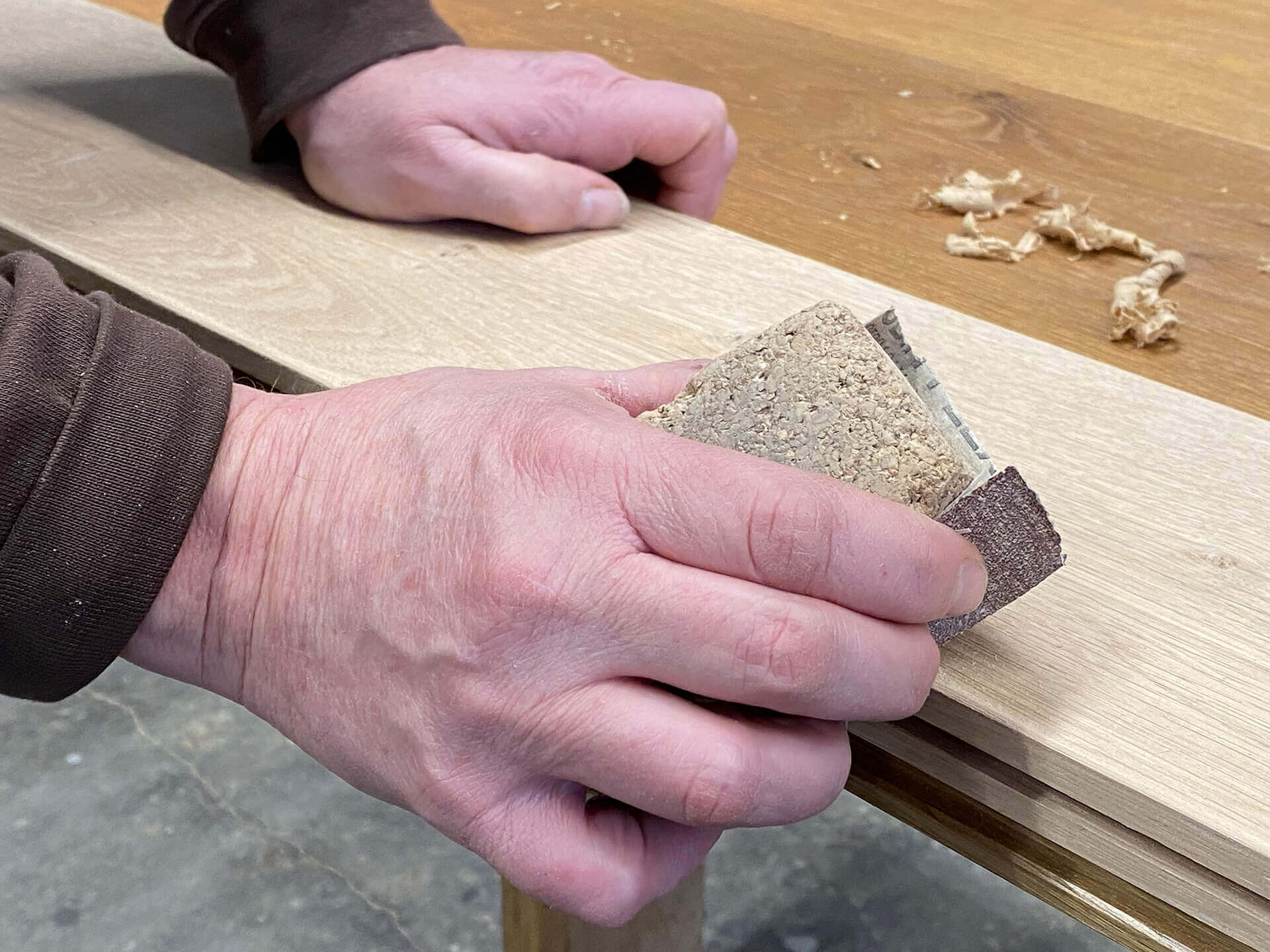 Die Veredelung der Oberfläche mit Ölen und Wachsen verlangt nach wie vor viel Handarbeit. Wir leben den Begriff „Manufaktur“.