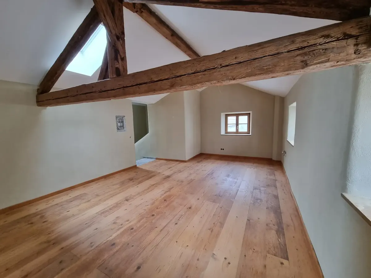 Im Erdgeschoß beherbergt das wunderschöne alte Gebäude ein Café und ist damit Anziehungspunkt für den Ort. In den oberen drei Stockwerken dürfen sich drei Mietparteien über ein ganz besonderes Wohnerlebnis erfreuen.