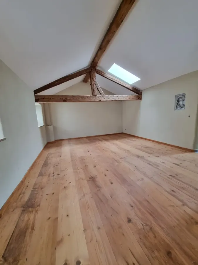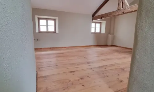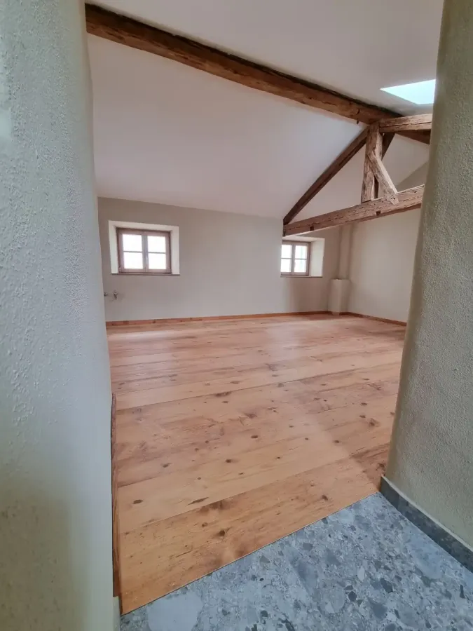 Mitten im beschaulichen Ort Grafing wurde am wunderschönen Dorfplatz nun auch dieses denkmalgeschützte Gebäude mit viel Aufwand saniert und restauriert. Die Fichtenaltholzdielen, die zum Teil wohl über 100 Jahre alt sind, wurden mit viel Mühe ausgebaut. Von Schädlingen befreit sind die Dielen dann von allen Seiten bearbeitet, mit neuem Nut- und Feder- System und einer aufgearbeiteten und dreifach geölten Oberfläche nun am früheren Ort wieder eingebaut.