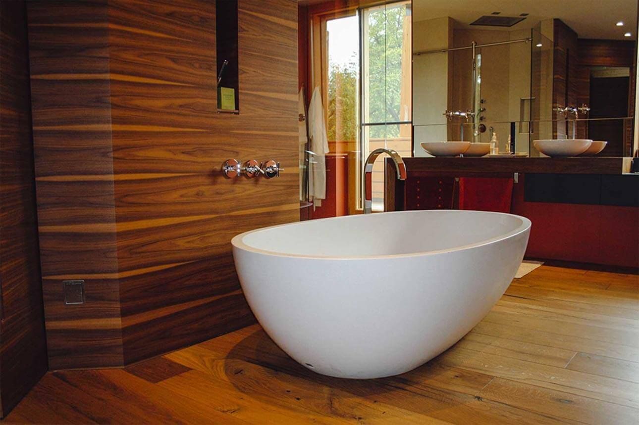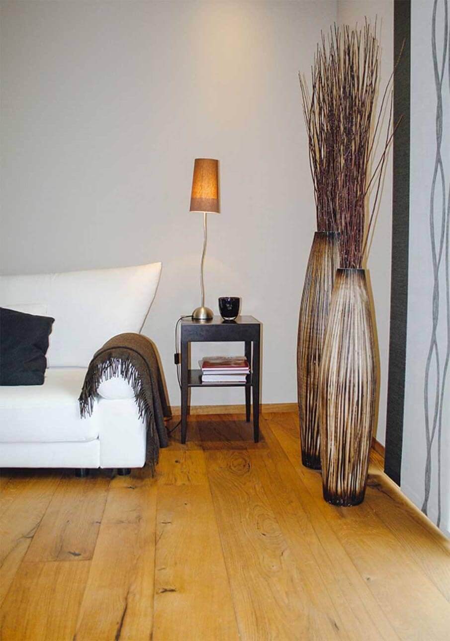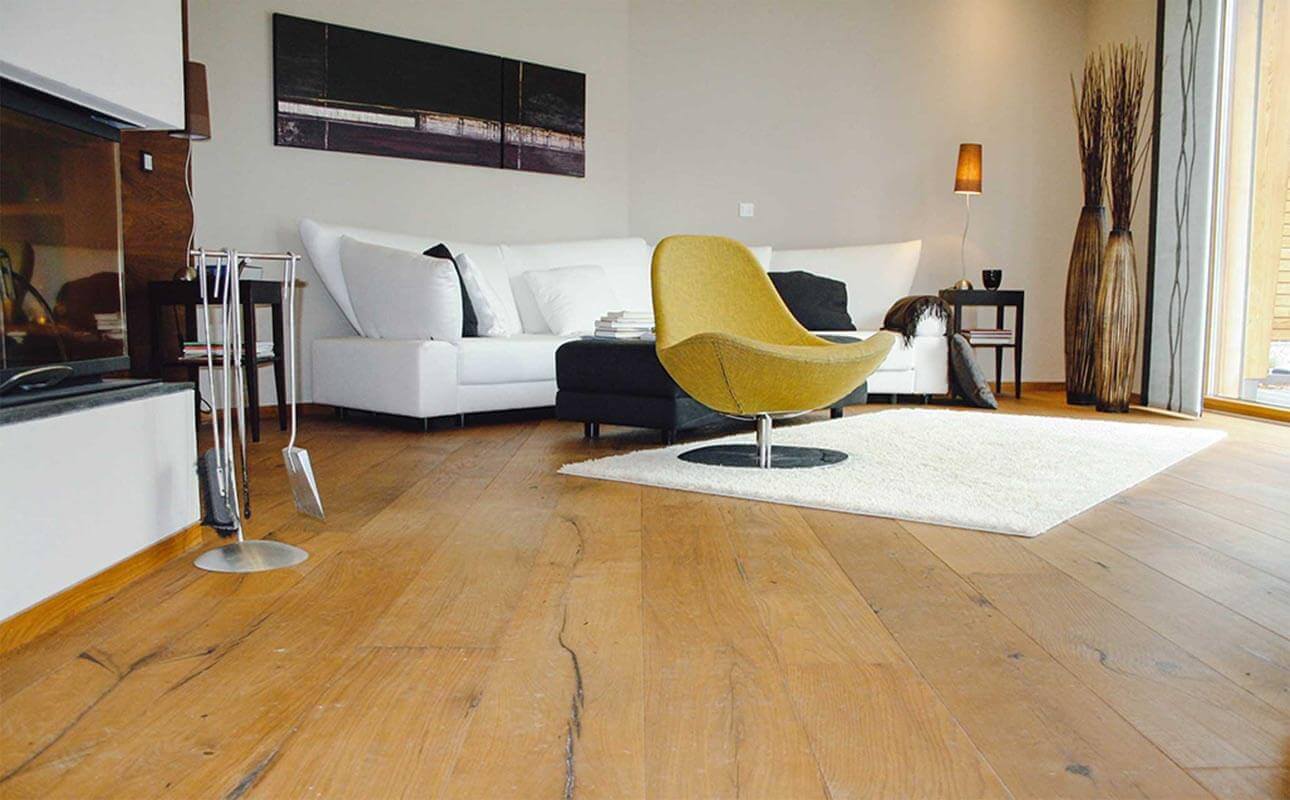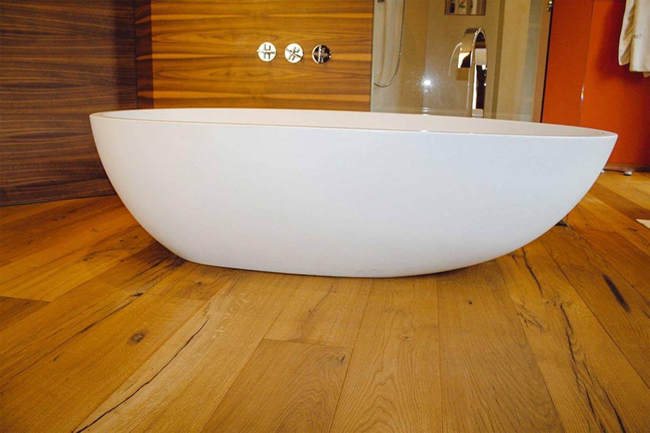 Auf einer Anhöhe außerhalb von Starnberg steht diese außergewöhnliche Villa in Holzbauweise. Das neu erstellte Objekt ist ein Passivhaus. Die massiven Holzdielenböden sind aus Eichen-Altholz hergestellt. Das Eichenholz war als Gebälk ca. 300 Jahre in einem landwirtschaftlichen Gebäude verbaut und begann demnach vor ca. 500 Jahren als Baum zu wachsen. Außergewöhnlich an dem Holz sind die fast schwarzen Einläufe an den Stellen, die von der Umgebungsluft berührt waren. Die Dielen sind in Breiten zwischen 18 und 22 Zentimeter Deckbreite hergestellt und bis zu 5,0 Meter lang. Der Dielenboden liegt auf Fußbodenheizung.